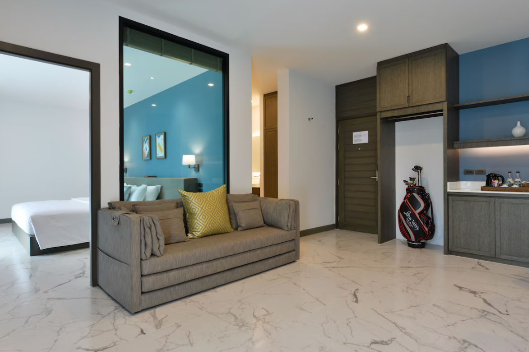 球场占地6000平方米,入口处设有宽敞的露天大堂,宾客可轻松从大堂直接步行至第一洞发球台。这里也是等待同组球友到来时放松身心的理想场所。