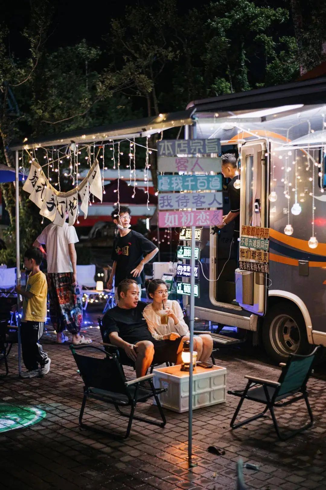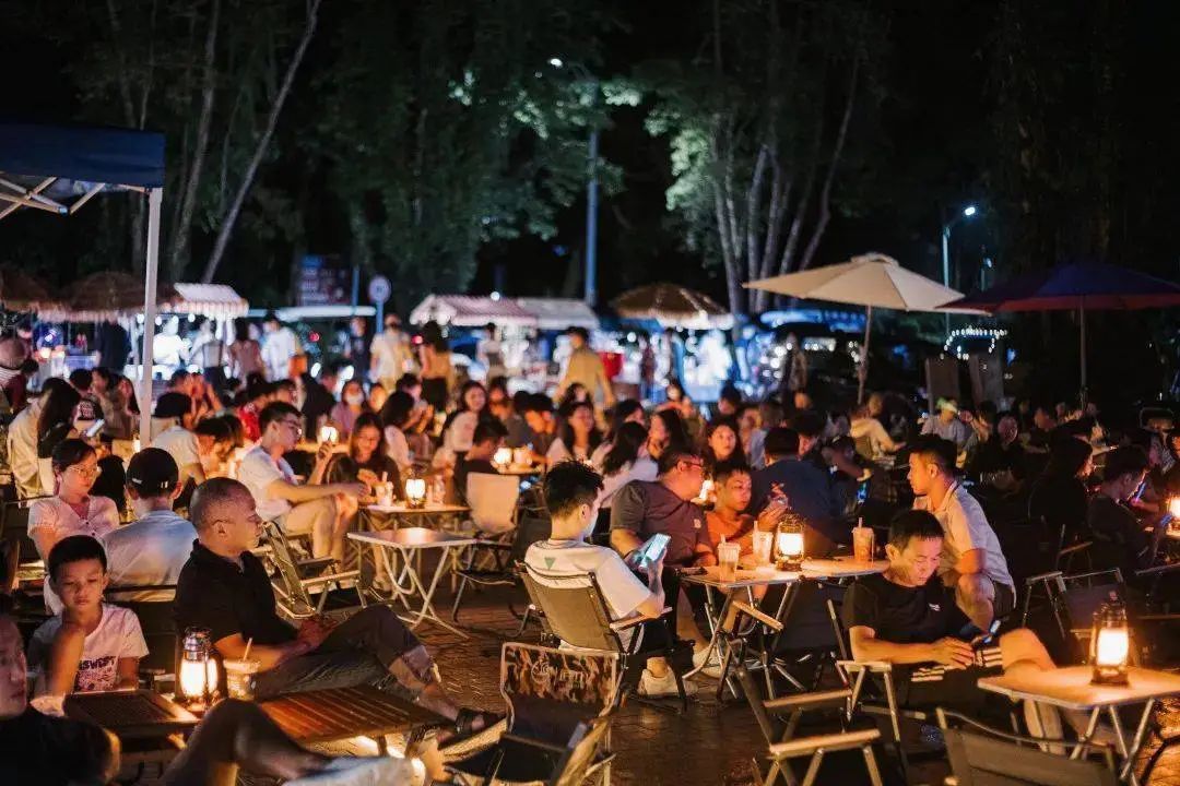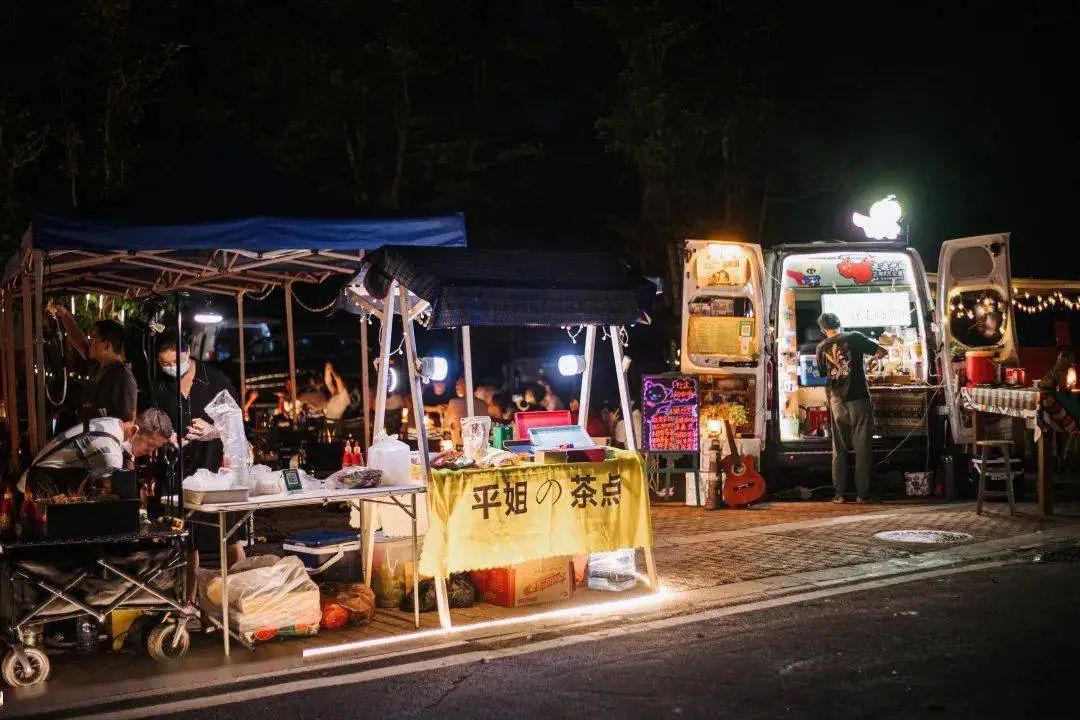 烧烤、街头调酒、烤冷面......十几家档口从傍晚营业到凌晨,吹着山间的微风,品尝着人间烟火气,顿觉幸福就是这么简单。
